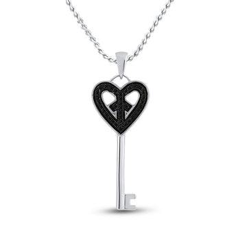 - Romantic Heart Key Pendant | Sterling Silver Womens Round Black Diamond Key Heart Pendant 1/10 Cttw | Splendid Jewellery