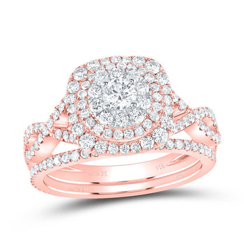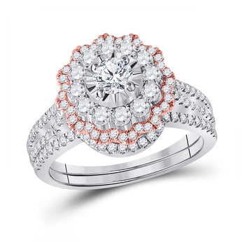 - Eternal Love 14kt Two-tone Gold Diamond Halo Bridal Wedding Ring Band Set with Ruby Accent