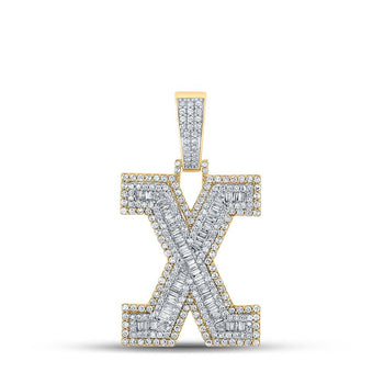 Sold out - 14kt Two-tone Gold Mens Baguette Diamond X Initial Letter Charm Pendant - 2 Cttw | Splendid Jewellery