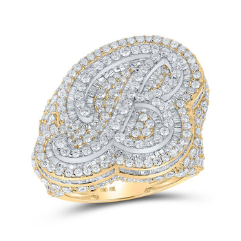 Sold out - 10kt Two-tone Gold Baguette Diamond B Initial Men's Ring - Striking Elegance