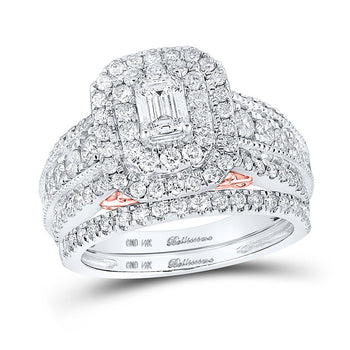 - 14kt Two-tone Gold Emerald Diamond Halo Bridal Wedding Ring Band Set - The Enchanting Love Story