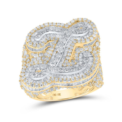 Introducing our 10kt Two-tone Gold Mens Baguette Diamond Z Initial Letter Ring - a true masterpiece by Splendid Jewellery. This captivating piece is designed to make a bold and personalized statement, showcasing your individuality and style.