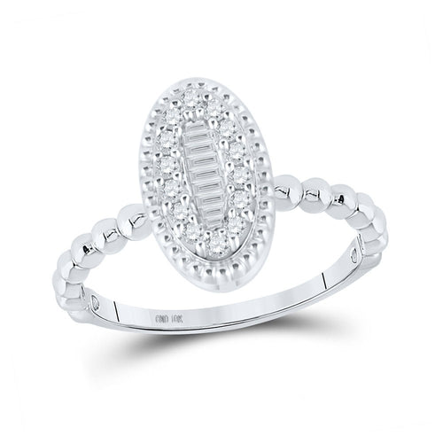 • Stunning cluster design: This diamond cluster ring features a captivating arrangement of baguette and round diamonds, creating a dazzling display that is sure to catch the eye.