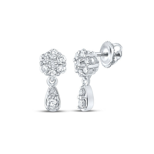 Introducing our Splendid Jewellery 10kt White Gold Womens Round Diamond Cluster Dangle Earrings. Designed to make a statement, these earrings combine stunning cluster design with high-quality craftsmanship for a truly captivating piece of jewelry.