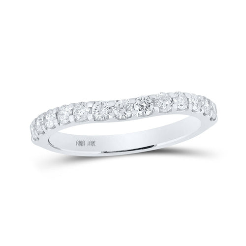 Add a touch of elegance and sophistication to your jewelry collection with our 10kt White Gold Womens Round Diamond Curved Band Ring. This exquisite piece showcases a curved design that sets it apart from ordinary band rings, making it a true statement piece.