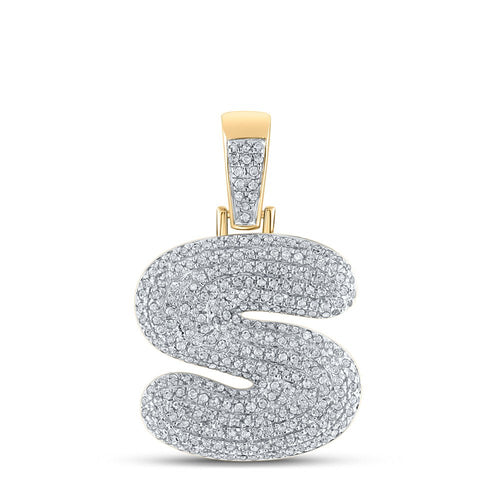 Elevate your style with our 10kt Yellow Gold Men's Round Diamond Bubble S Letter Charm Pendant. It's not just a piece of jewelry; it's a symbol of your unique personality and impeccable taste. Embrace the elegance and sophistication it brings and let your style shine.