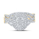 • Stunning bridal wedding ring set featuring a 10kt yellow gold band adorned with a cluster of round diamonds.