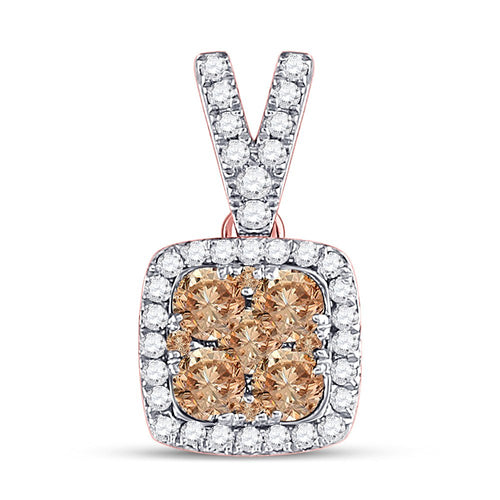 • Exquisite Design: This stunning Diamond Cluster Pendant in 14kt Rose Gold showcases a captivating square pendant adorned with round brown diamonds. The intricate arrangement of these diamonds creates a mesmerizing pattern that is sure to catch everyone's attention.