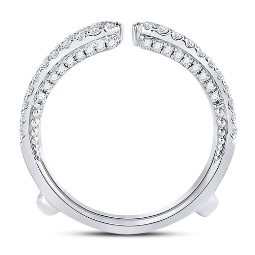 Elevate your engagement ring to new heights with our exquisite 14kt White Gold Womens Round Diamond Wrap Ring Guard Enhancer. This stunning piece of jewelry is designed to enhance the beauty and brilliance of your existing ring, adding an extra touch of elegance to your finger.