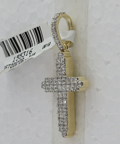 Elevate your style with our 14kt Yellow Gold Men's Round Diamond Cross Charm Pendant. Meticulously crafted with exceptional attention to detail, this pendant is a true masterpiece.