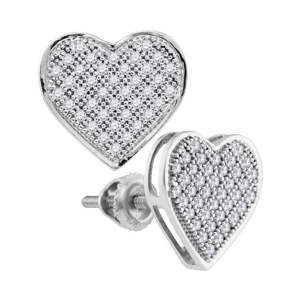 10kt White Gold Womens Round Diamond Heart Earrings 1/4 Cttw