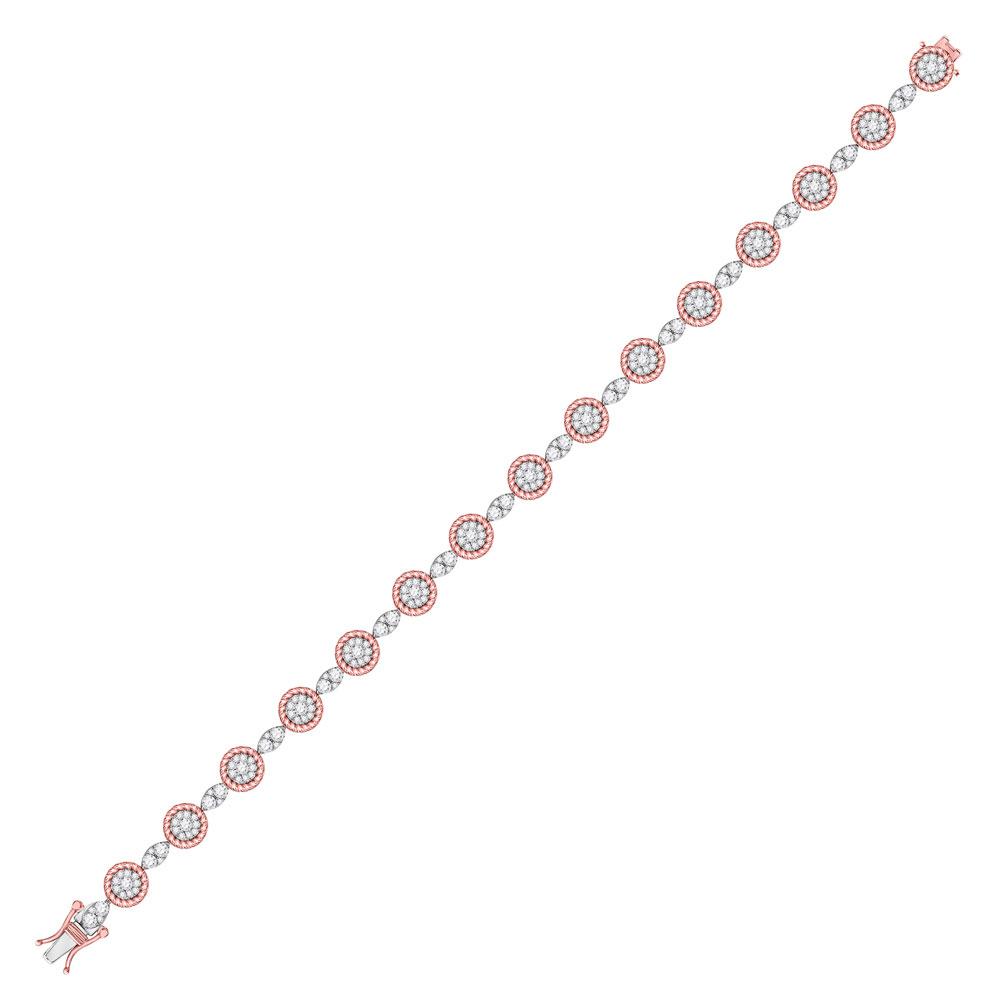 Enhance your wrist with the exquisite beauty of our 14kt Two-tone Gold Women's Round Diamond Flower Cluster Fashion Bracelet. This dazzling piece showcases a stunning total weight of 2-1/2 carats, featuring natural and conflict-free round diamonds.