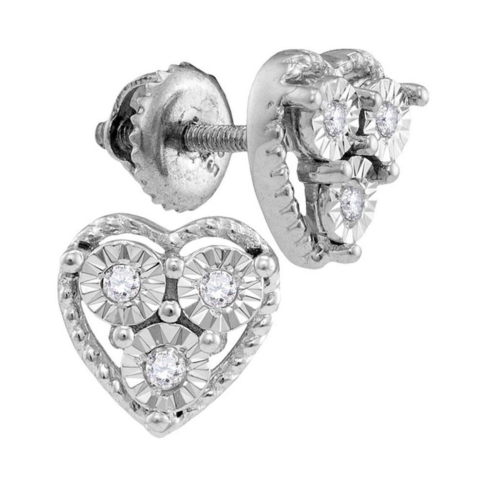 Heartfelt Brilliance: Sterling Silver Womens Round Diamond Heart Earrings 1/20 Cttw