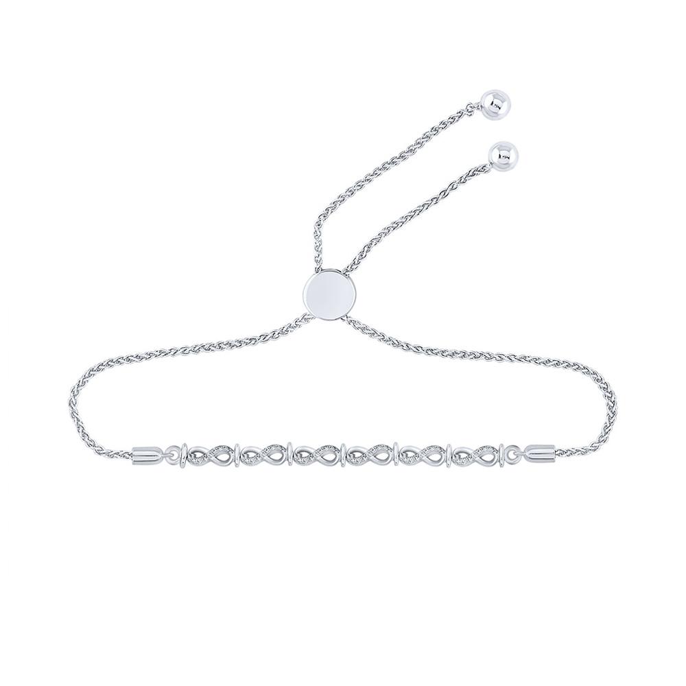 Elevate your style and add a touch of sophistication to any ensemble with our Sterling Silver Women's Round Diamond Infinity Bolo Bracelet. This exquisite piece is a testament to your impeccable taste.