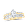 Radiant Love: 10kt Yellow Gold Pear Diamond Halo Bridal Wedding Ring Band Set 1/2 Cttw