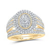 Make a statement on your wedding day with our 10kt Yellow Gold Round Diamond Cluster Bridal Wedding Ring Band Set. It's time to shine and create memories that will last a lifetime.