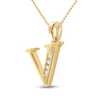 Indulge in the romance and luxury of our 10kt Yellow Gold Womens Round Diamond V Initial Letter Pendant. This exquisite piece of jewelry is designed to captivate hearts and turn heads wherever you go.