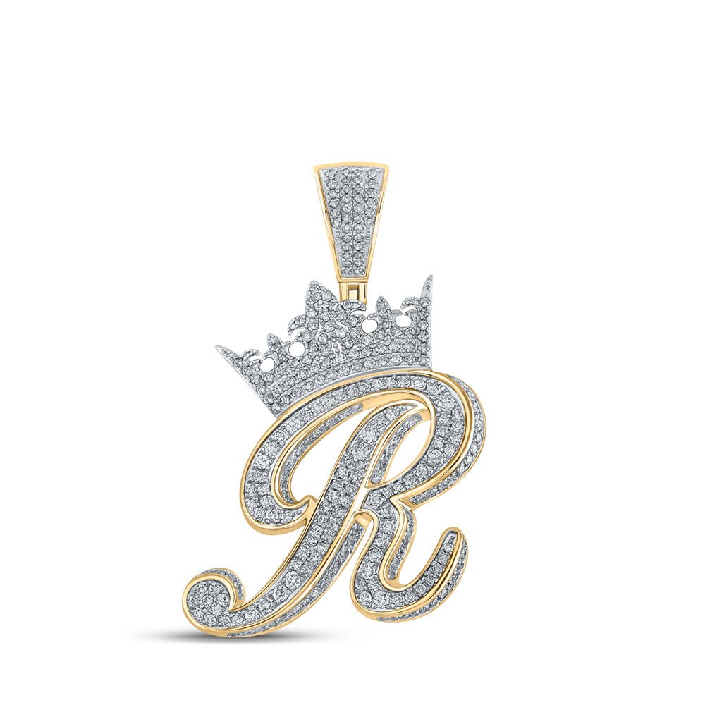 10kt Two-tone Gold Men's Diamond Crown R Letter Charm Pendant - 1-7/8 Cttw