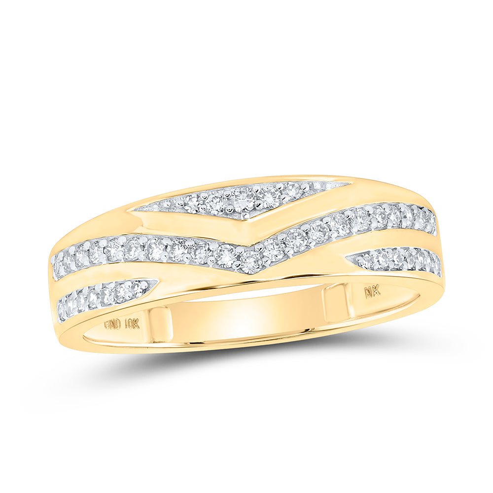 • Stunning His and Hers Wedding Set: This beautiful matching wedding set is crafted in 10kt yellow gold and features a round diamond cluster design that is sure to catch everyone's attention.