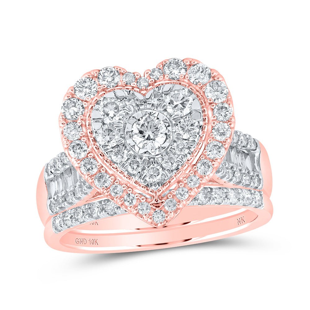 Fall in love all over again with the Splendid Jewellery 10kt Rose Gold Round Diamond Heart Bridal Wedding Ring Band Set. This exquisite set is meticulously crafted with love and care, making it the perfect symbol of your eternal commitment to each other.