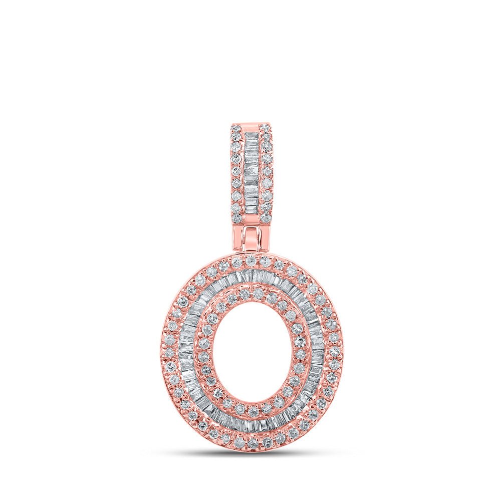 10kt Rose Gold Men's Baguette Diamond O Initial Pendant - 1/2 Cttw