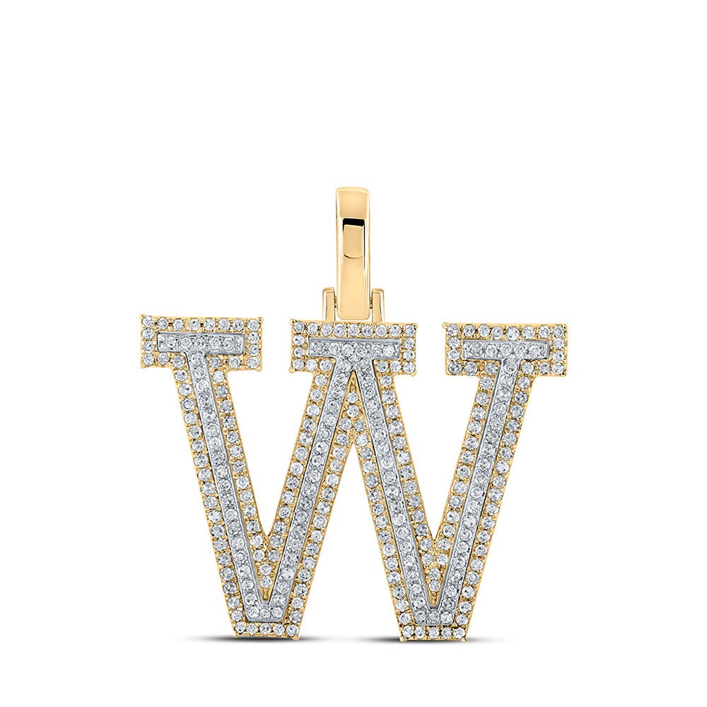10kt Two-tone Gold Men's Round Diamond W Initial Letter Pendant 3/4 Cttw | Splendid Jewellery - A Dazzling Diamond Charm Pendant for Men