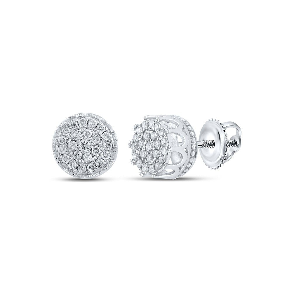 10kt White Gold Men's Round Diamond Cluster Earrings - Sparkling Brilliance
