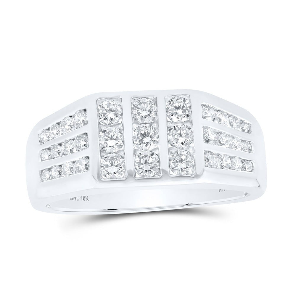 10kt White Gold Men's Round Diamond Flat-top Band Ring 1 Cttw | Exquisite Masculine Brilliance