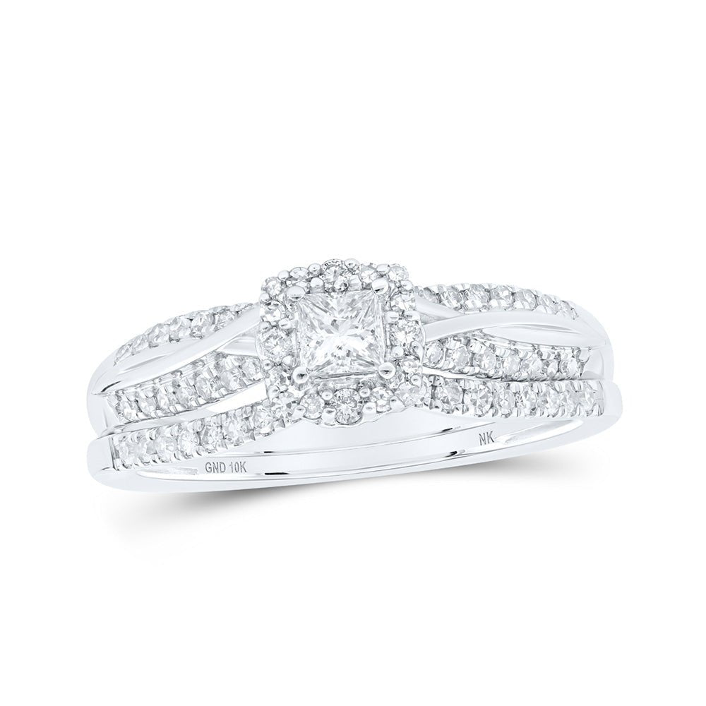 Captivating Brilliance: 10kt White Gold Princess Diamond Halo Bridal Wedding Ring Band Set