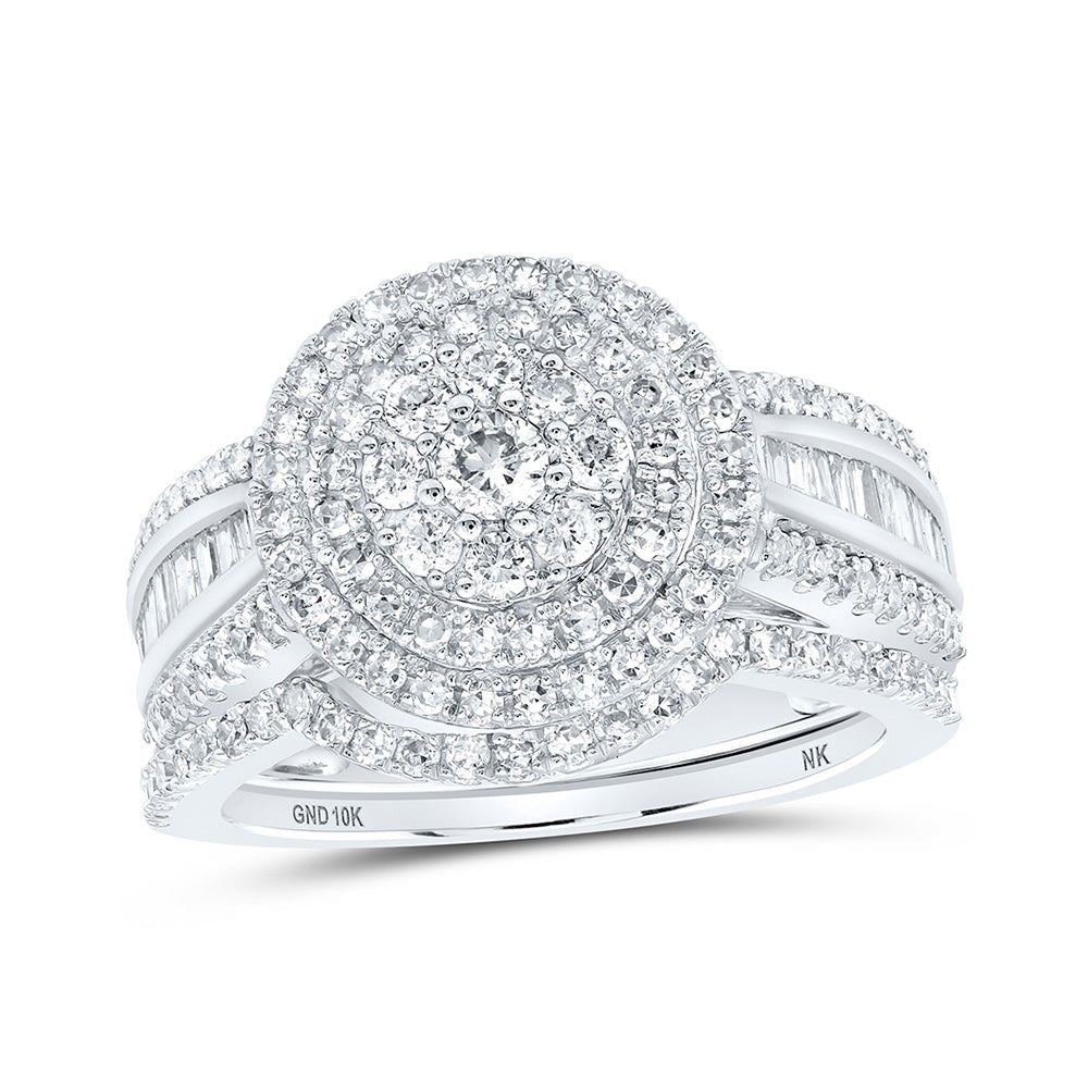 Captivating Brilliance: 10kt White Gold Round Diamond Cluster Bridal Wedding Ring Band Set 1-1/4 Cttw
