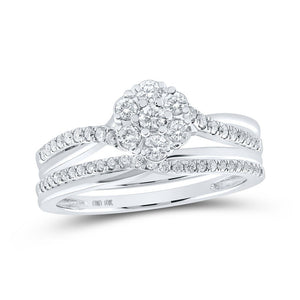 Make a statement on your wedding day with our 10kt White Gold Round Diamond Cluster Bridal Wedding Ring Band Set 1/2 Cttw. It's a symbol of everlasting love and a testament to your unique style. Order yours today and create memories that will last a lifetime.