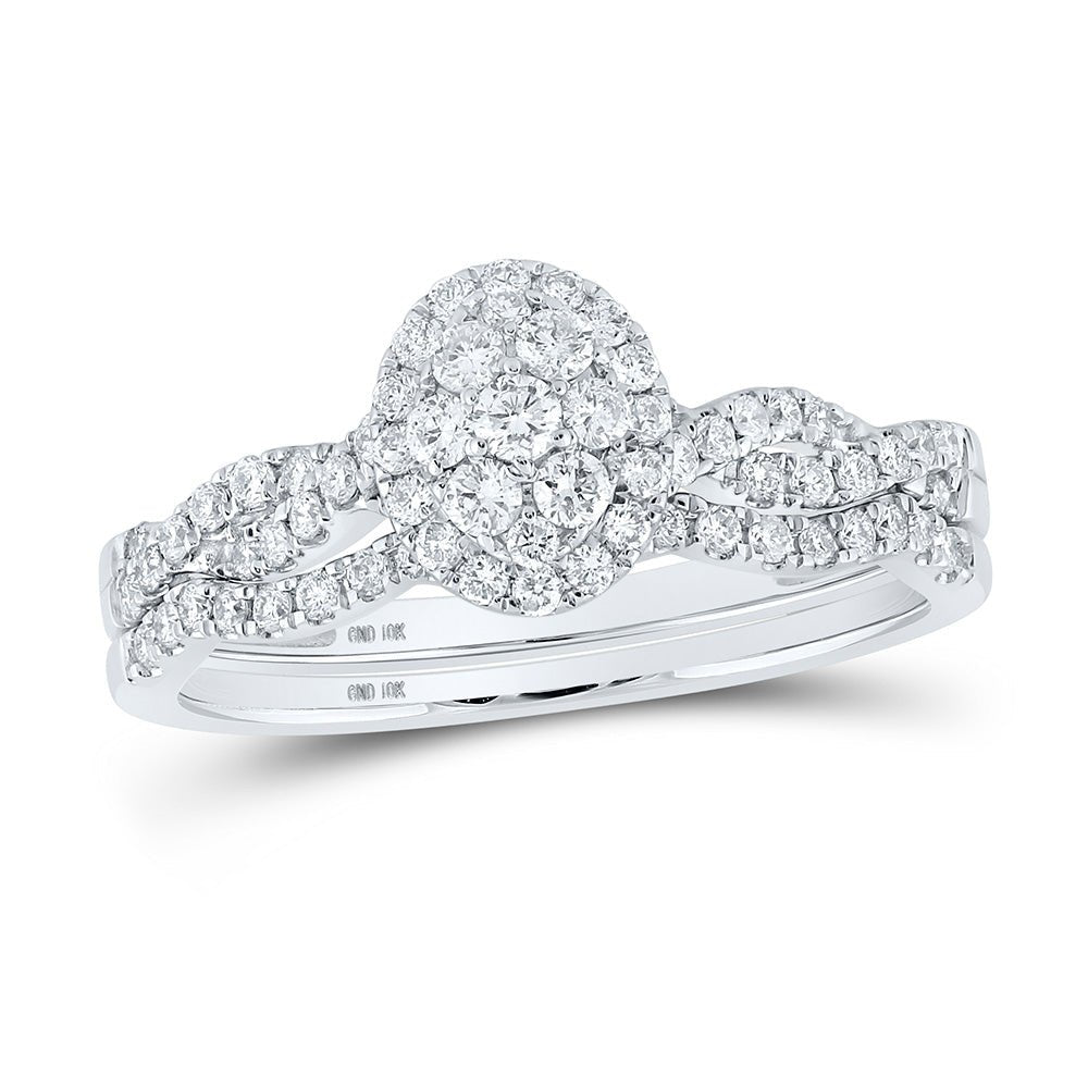 Eternal Brilliance 10kt White Gold Round Diamond Cluster Bridal Wedding Ring Band Set