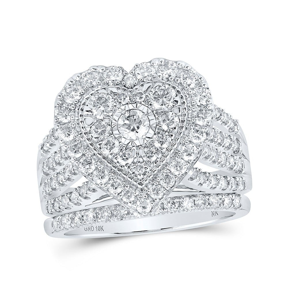 Make your special day even more memorable with our 10kt White Gold Round Diamond Heart Bridal Wedding Ring Band Set. It's a symbol of your love and commitment, and a timeless piece that you'll treasure forever.