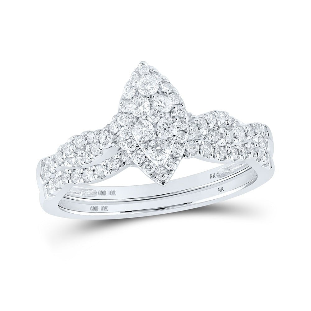 Celebrate your love story with our exquisite 10kt White Gold Round Diamond Marquise-shape Cluster Bridal Wedding Ring Band Set. This splendid jewellery piece is a true masterpiece, meticulously crafted to capture the essence of romance and beauty.