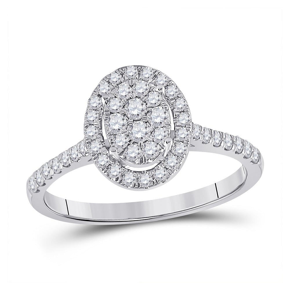 Eternal Brilliance: 10kt White Gold Round Diamond Oval Bridal Wedding Engagement Ring 1/2 Cttw