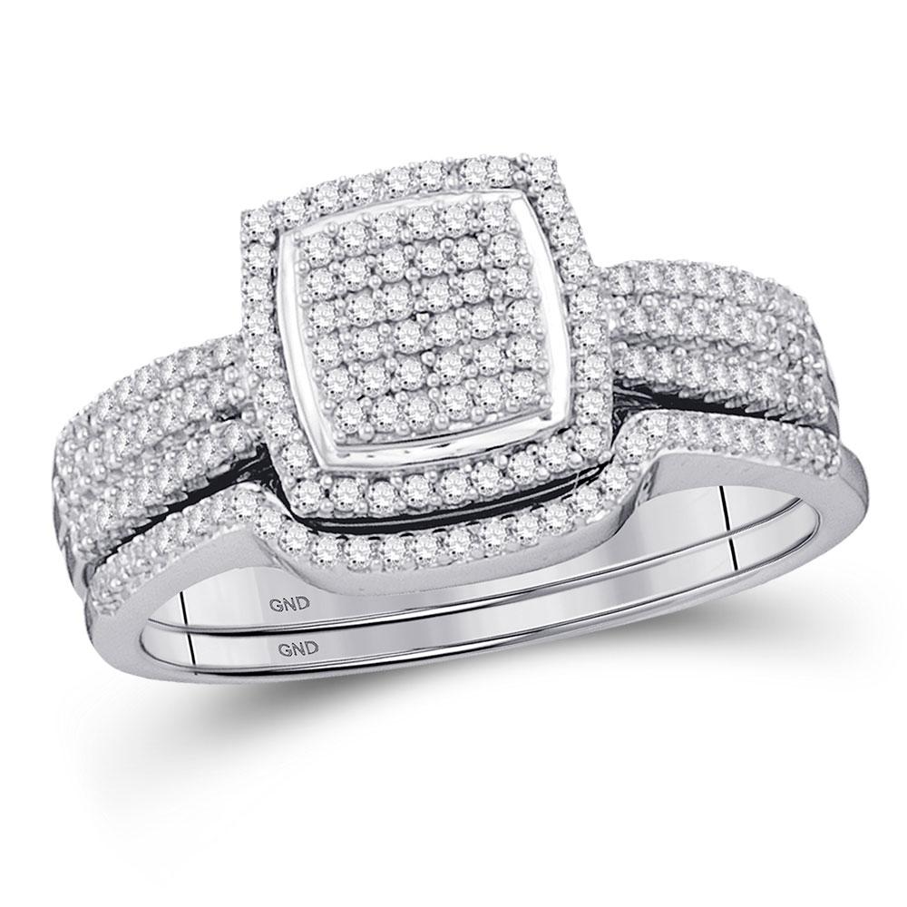 10kt White Gold Round Diamond Square Bridal Wedding Ring Band Set 1/2 Cttw