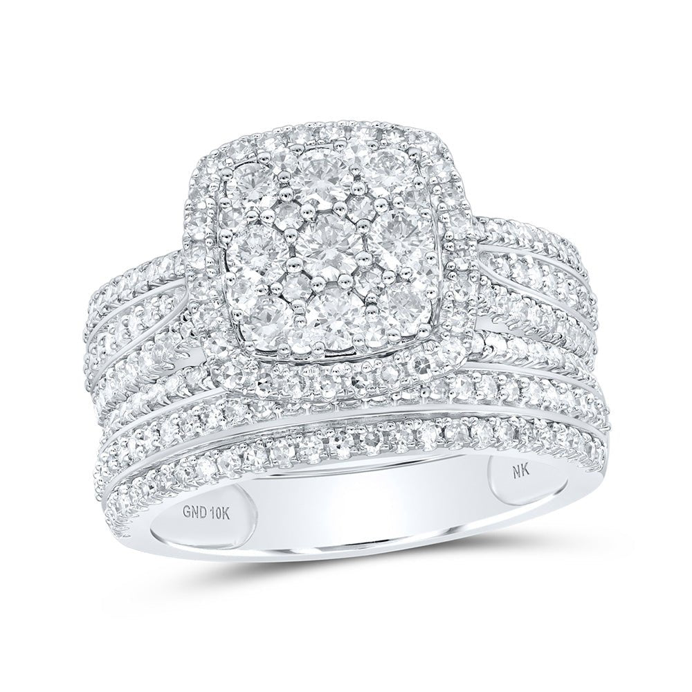 Captivating Brilliance: 10kt White Gold Round Diamond Square Cluster Bridal Wedding Ring Band Set 1-1/2 Cttw