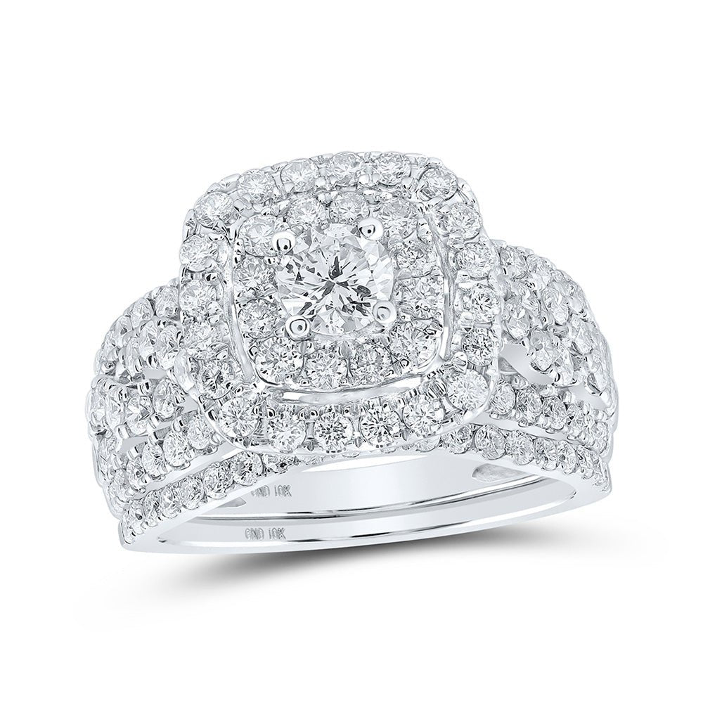 Order your 10kt White Gold Round Diamond Square Halo Bridal Wedding Ring Band Set today and let its radiant beauty illuminate your special moments. Experience the joy of wearing a piece that reflects the depth of your love and the brilliance of your bond.