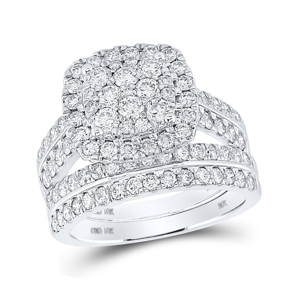 Don't settle for anything less than perfection on your wedding day. Make a statement with our 10kt White Gold Round Diamond Square Halo Bridal Wedding Ring Band Set and create memories that will last a lifetime.
