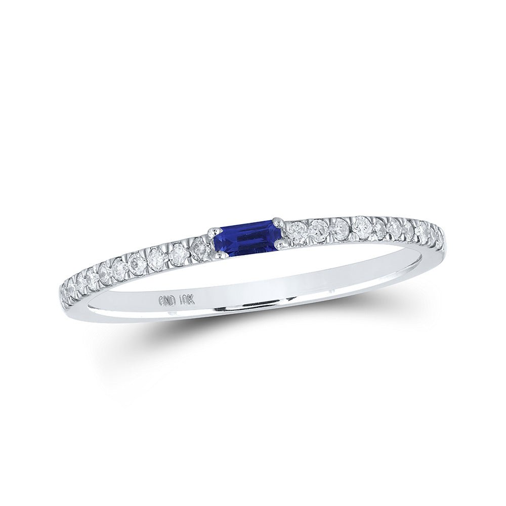 Ocean Mist - 10kt White Gold Baguette Blue Sapphire and Diamond Band Ring - Alternate view 1 from Splendid Jewellery