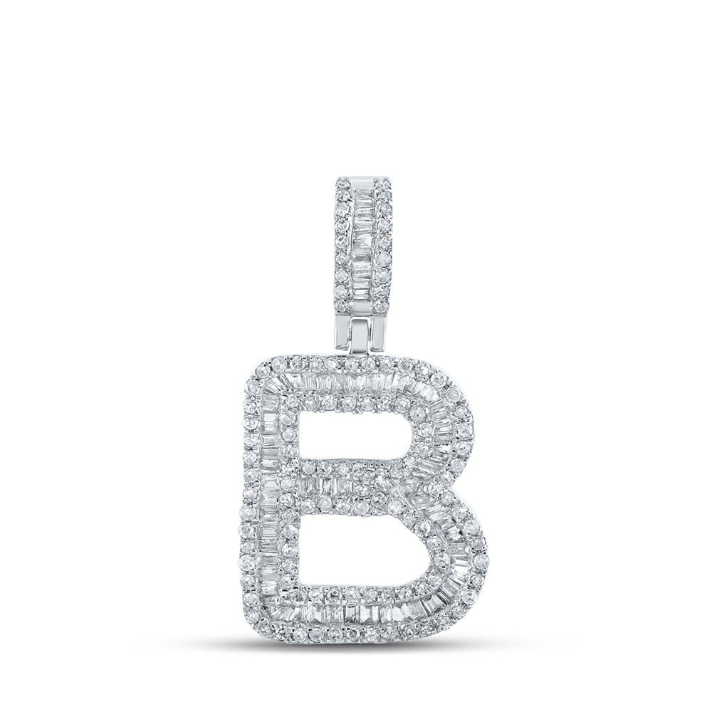 10kt White Gold Baguette Diamond B Initial Pendant for Men - 5/8 Cttw
