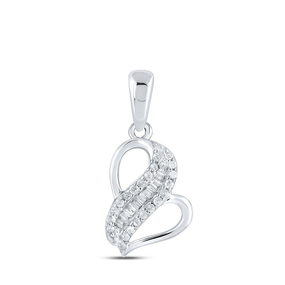 Made from 10kt white gold, this pendant showcases a captivating design that beautifully combines a heart and a love symbol, symbolizing the eternal bond of love. The heart-shaped frame encases a mesmerizing baguette-cut diamond, adding a touch of elegance and sophistication to the pendant. The diamond, with its G-H color and I1 clarity, sparkles and shines with every movement, capturing the light and reflecting it in a mesmerizing dance.