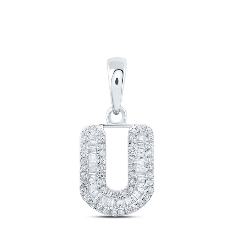 • Exquisite craftsmanship: Handcrafted with precision, this 10kt white gold pendant showcases a stunning U initial design adorned with sparkling baguette and round diamonds.
