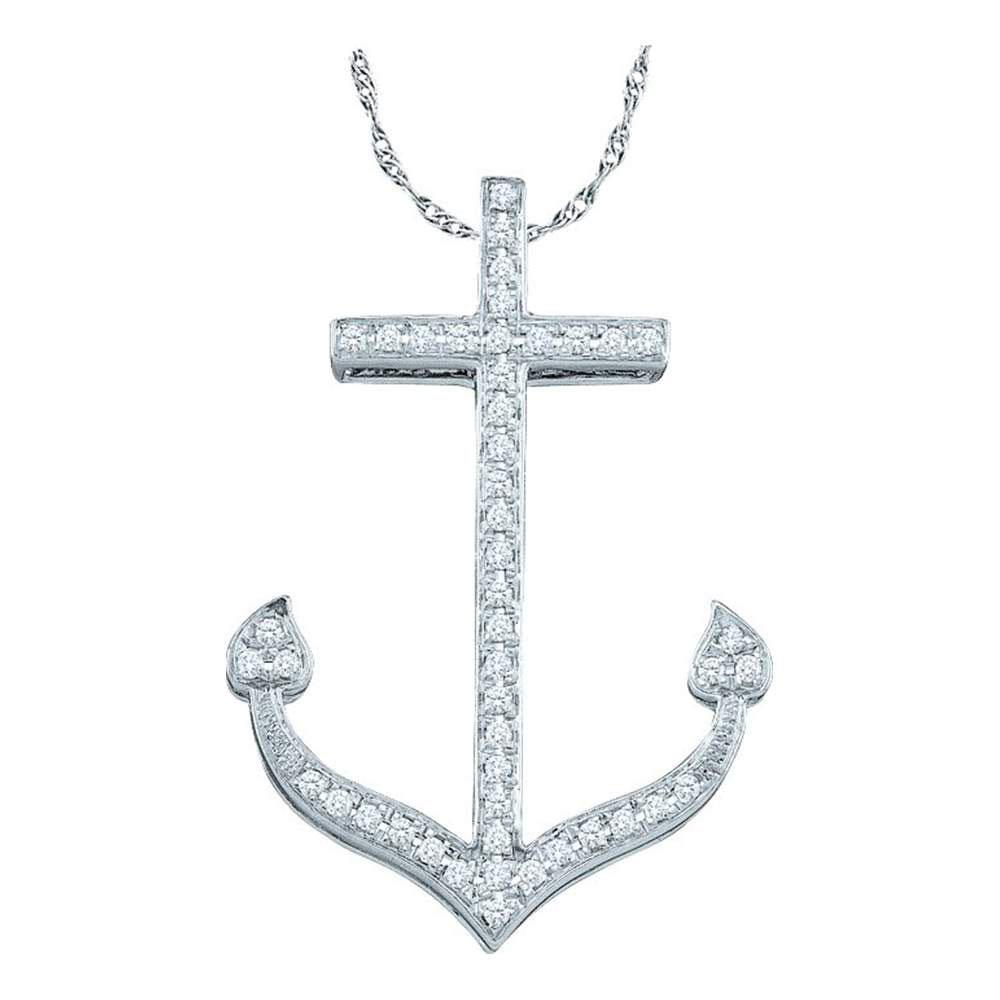 Description 10kt White Gold Womens Round Diamond Anchor Nautical Pendant 1/6 Cttw Gemstone Details 1/6 Carats total weight Specifications 10kt White Gold Combined diamond weight of 1/6 carats total weight represents a range of 0.15 - 0.17 cts. t.w.