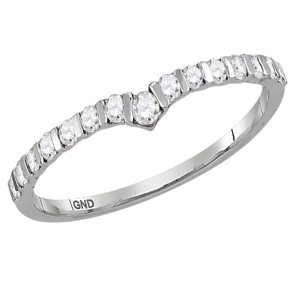 Radiant Diamond Chevron Stackable Band Ring | 10kt White Gold Womens Round Diamond Chevron Stackable Band Ring 1/4 Cttw | Splendid Jewellery