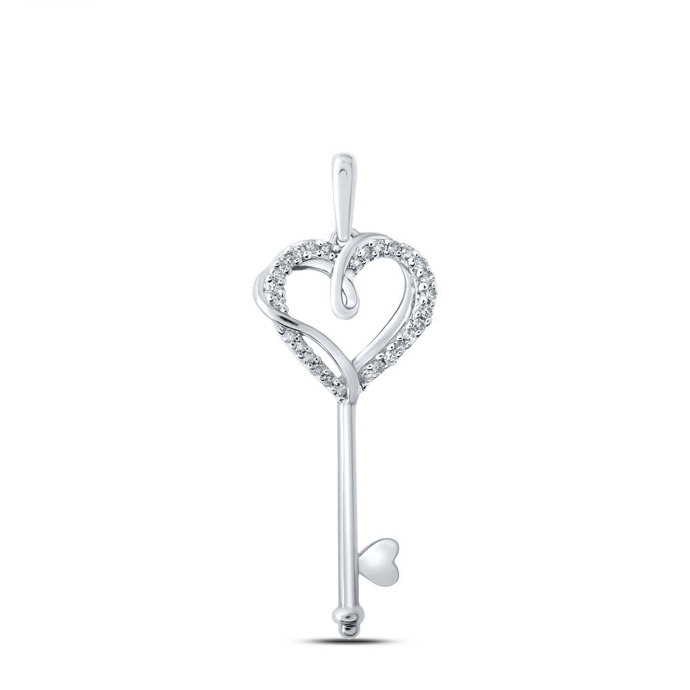 Romantic Heart Key Diamond Pendant in 10kt White Gold by Splendid Jewellery Top view from the 10Kt White Gold Womens Round Diamond Heart Key Pendant 1 12 Cttwpin214000 collection by Splendid Jewellery