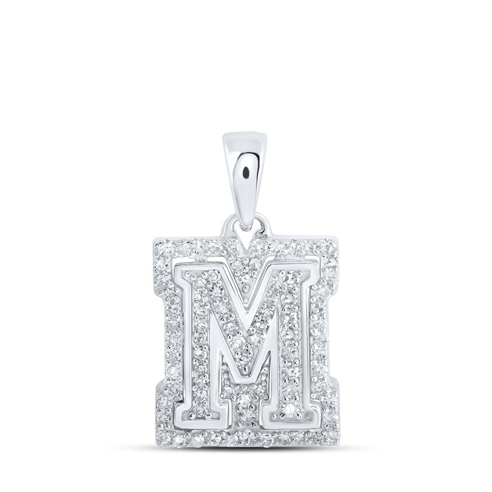 10kt White Gold Round Diamond Initial Pendant - Personalized Elegance at its Finest Top view from the 10Kt White Gold Womens Round Diamond M Initial Letter Pendant 1 4 Cttwpin216095 collection by Splendid Jewellery