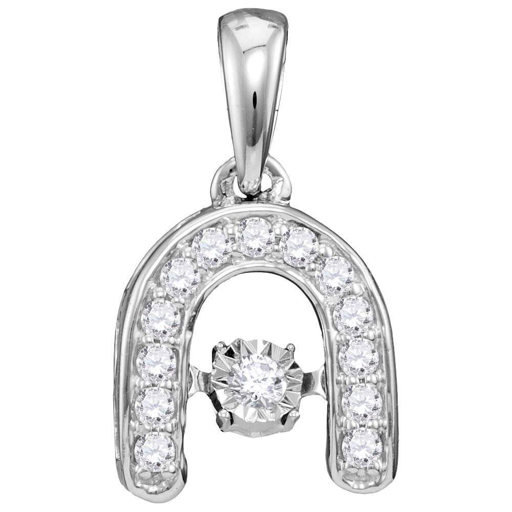 10kt White Gold Womens Round Diamond Moving Twinkle Solitaire Horseshoe Pendant 1/8 Cttw
