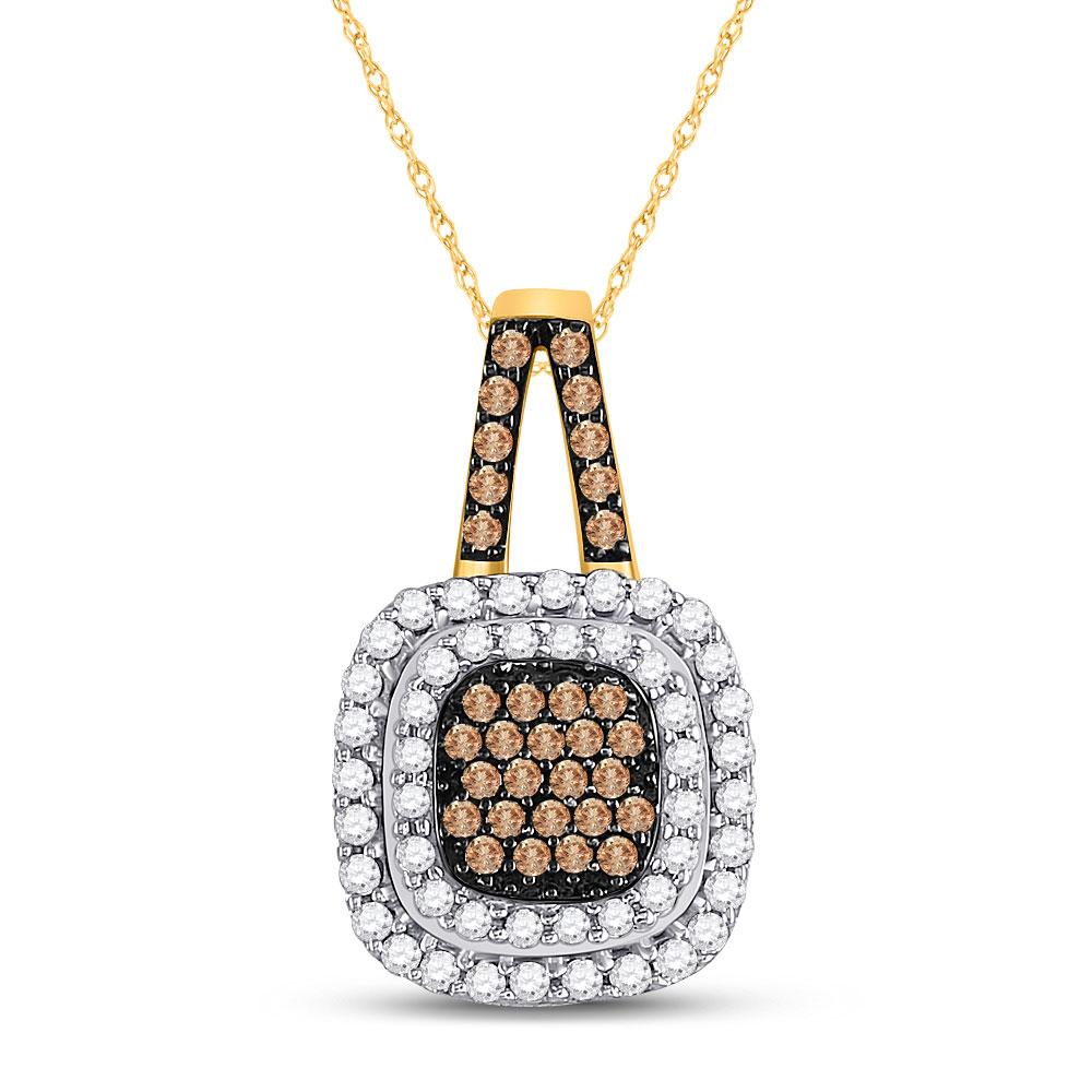 10kt Yellow Gold Womens Round Brown Diamond Square Frame Pendant 1/2 Cttw