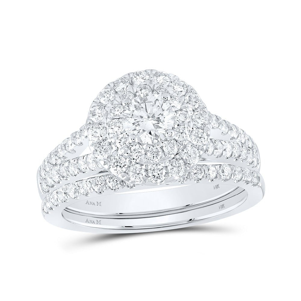 Get ready to say "I do" in style with our 14kt White Gold Round Diamond Halo Bridal Wedding Ring Band Set. This exquisite set is a true representation of love and commitment, designed to make your special day even more memorable.